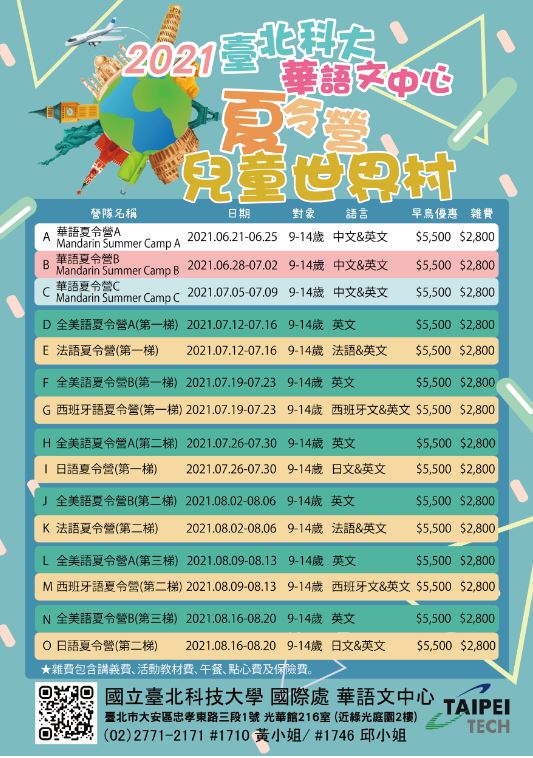 二、活動課程內容以主題教學、體驗及實作課程為主,採混齡分組方式上課,由外師進行分組教學。活動日程與海報,請詳見附件。
