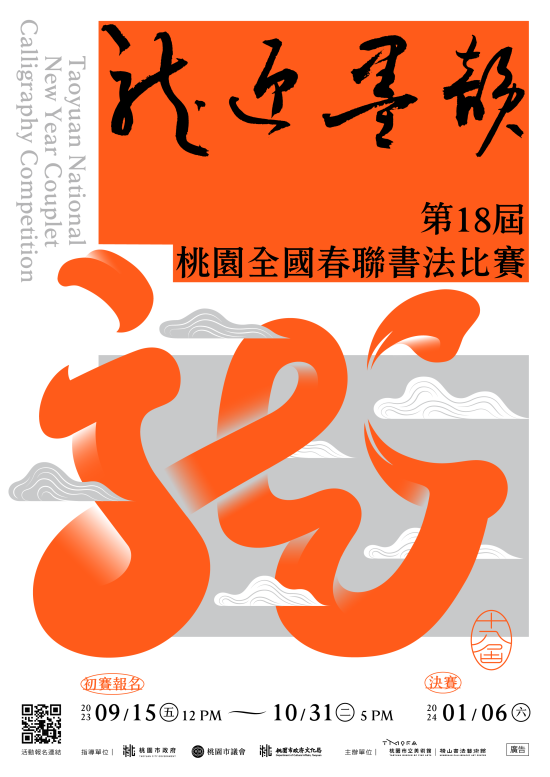 一、為宏揚及傳承書法藝術文化,並配合新春節慶,特舉辦本項比賽,廣邀全民踴躍參賽。 二、本比賽自112年9月15日中午12時起至112年10月31日下午5時止採初賽線上報名,並於113年1月6日(星期六)進行現場揮毫決賽,活動詳情請至本館官方網站查詢:https://tmofa.tycg.gov.tw/ch/open-call/Spring-Couplets。 三、檢附本比賽海報及報名簡章電子檔各1份,請惠予協助於貴機關電子看板、網站或臉書粉絲專頁刊登訊息,至紉公誼。