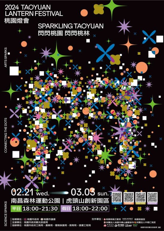 一、依據桃園市政府觀光旅遊局113年2月2日桃觀旅字第 1130001252號函辦理。 二、旨揭燈會將於113年2月21日至3月3日於虎頭山創新園區及南昌森林運動公園舉辦。 三、為擴大活動宣傳效果,請貴校協助張貼活動海報(如附 件),並利用跑馬燈自即日起至 3月3日宣傳,文字內容建議如下:「2024桃園燈會2/21-3/3在虎頭山創新園區及南昌森林運動公園,還有限量小提燈陪您歡慶元宵節。」(字數可依實際需求調整)。 四、檢附旨揭活動海報(電子檔)1份。